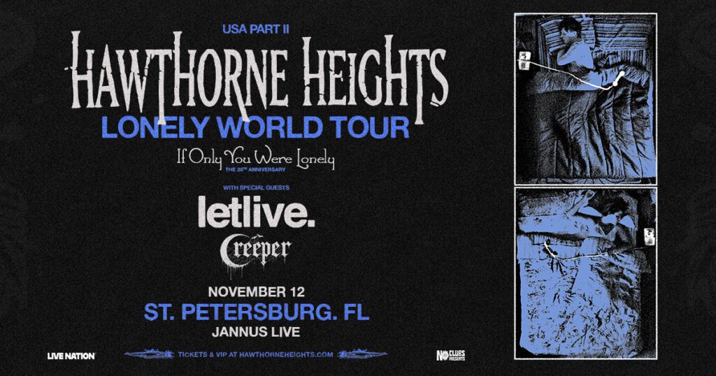 Support: Letlive, Creeper HAWTHORNE HEIGHTS LINKS: Website: https://hawthorneheights.com/ Facebook: https://www.facebook.com/HawthorneHeights Instagram: https://www.instagram.com/hawthorneheights/ X: https://twitter.com/HawthorneHgts LETLIVE. LINKS: Website: https://www.letliveperiod.com/ Facebook: https://www.facebook.com/theletlive/ Instagram: https://www.instagram.com/letliveperiod/ X: https://x.com/thisisletlive CREEPER LINKS: Website: https://www.creepercult.com/ Facebook: https://www.facebook.com/creepercult Instagram: https://www.instagram.com/creepercult X: https://x.com/creepercultuk